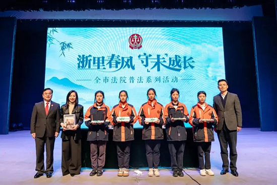 3月28日,湖州市中级人民法院党组书记、院长肖国耀走进浙江省湖州艺术与设计学校,以“法治副校长”身份为500余名学生讲授专题法治教育课。湖州市教育局党委书记、局长陈建良参加。