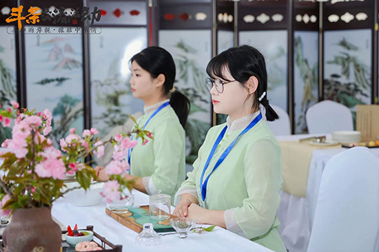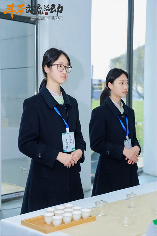 斗茶交流活动组协助评审流程,近距离学习专家对60余种西湖龙井茶样的品鉴技巧,并参与台湾高山乌龙茶的品饮服务,深入体会两岸茶艺的异同。