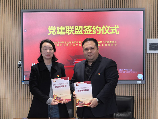 为深入贯彻落实党的二十届三中全会精神和《教育强国建设规划纲要(2024—2035年)》,发挥党建引领作用,汇聚合力提升高技能人才培养质量,近日,浙江交通技师学院运输管理学院党支部与金华市轨道交通集团运营有限公司车辆第二党支部党建联盟签约仪式在畅行楼B203会议室隆重举行。双方商定一同开展“校企五同党建+”,推动校企思想同向、双师同导、文化同频、平台同创、资源同享,进一步深化校企合作,助力地方轨道交通事业高质量发展。