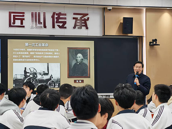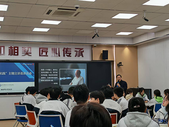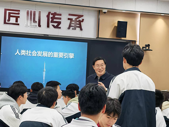 课堂上,徐须实从“何为科技创新”“科技创新,中国何为”“科技强国,我们何为”三个方面展开讲述,深入浅出地阐述了科技创新的重要意义以及我国在科技创新领域取得的辉煌成就。他强调,科技创新是引领发展的第一动力,是推动民族复兴的重要引擎。通过回顾四次工业革命的历史脉络,他生动描绘了我国从“跟跑”到“并跑”再到“领跑”的跨越式发展历程,并结合我国在航天、人工智能、新能源等领域的重大突破,充分展现了我国科技创新的蓬勃活力和广阔前景。徐须实的讲述既有理论高度,又有实践深度,引发了在场师生的广泛共鸣与深刻思考。