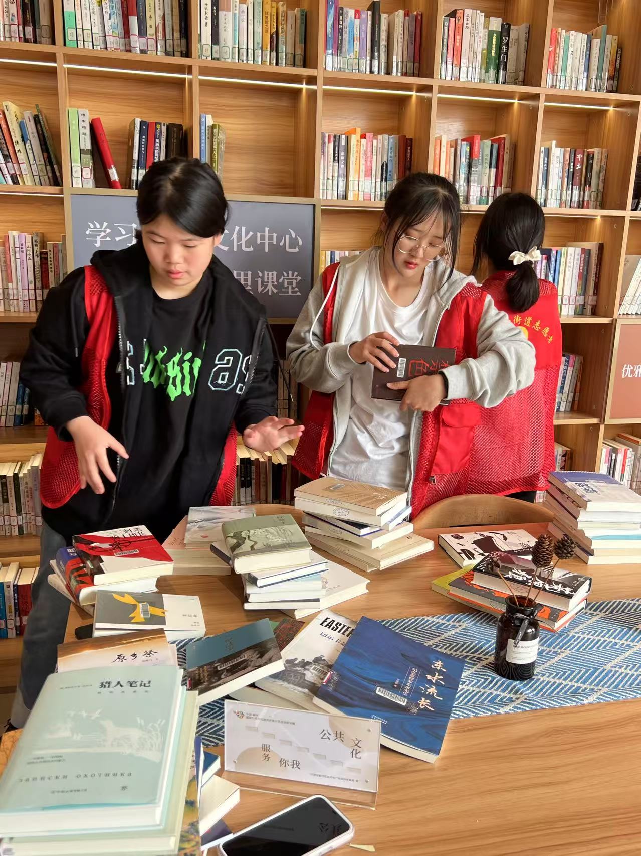 为了提升班级学生的文化素养,24电商中高班班主任付传扬在每个晚自习专门开辟半个小时的时间来让同学们进行阅读。并采用积分制,班会课分享读书心得等各种形式来营造班级读书氛围。付老师还组织同学们利用双休日赴宁波市图书馆进行志愿者活动以此来提升同学们对于纸质书的热爱。“00后的学生都是数字土著, 这种多维度的读书氛围营造有利于提升他们的文化素养。”付老师说。