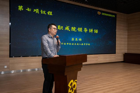 计算机学科导师、余姚四职副校长陈伟代表导师承诺为青年教师发展的倾囊相授;学员代表吴紫钰老师以“破茧成蝶”为喻,誓言“扎根职教、以实干磨砺专业锋芒”。宁波市职业与成人教育学院副院长苏东伟随后代表学院致辞,向全体导师致以诚挚谢意,同时寄语全体学员,在未来的成长征程中,既要虚心向导师求教专业智慧,也要积极与同伴互学互鉴,将双轨学习转化为持续成长的动力源泉。