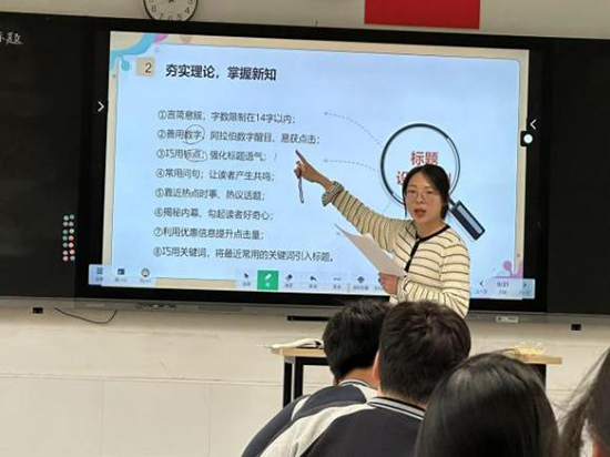 在电商直播课堂上,学校吴紫钰老师以真实项目驱动课堂,解析《电商直播——商品推荐》技巧;慈溪职高张佳芸老师通过《打造爆款标题 抓住流量密码》案例,揭秘流量密码,课堂互动热烈,彰显“产教融合”特色。