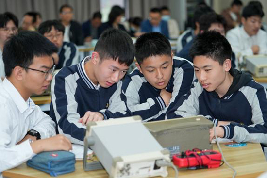 电工电子专业教师孙霞老师讲授《基于双电阻及RC串联交流电路的实验“测”电压关系,“观”波相位》,通过实验让学生直观理解电路原理。宋志强老师讲授《三层电梯控制系统程序的分析与优化》,培养学生的编程和逻辑思维能力。