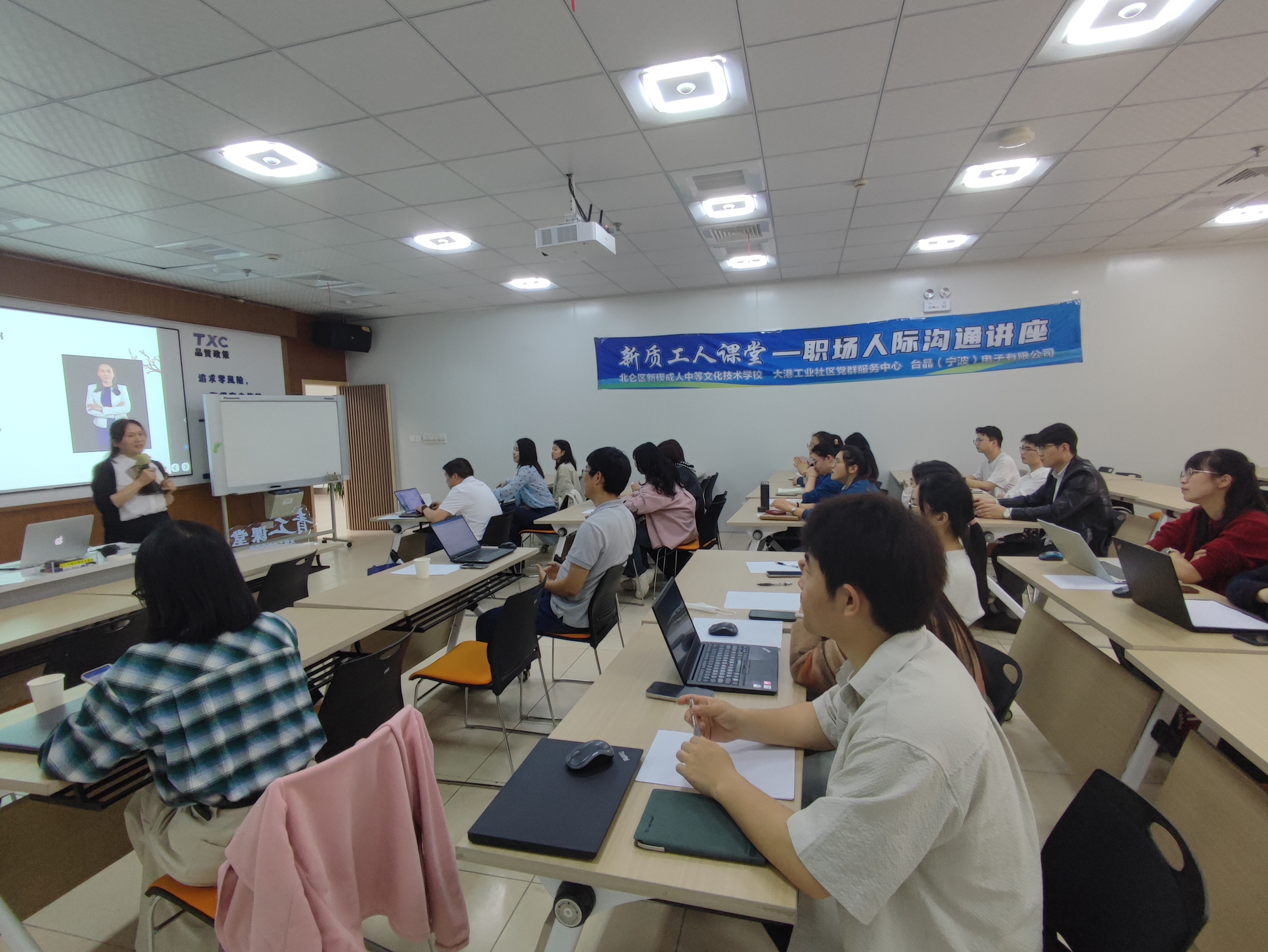 近日,应台晶(宁波)电子有限公司邀请,新碶成校邱变枝老师走进新碶街道大港工业社区,为该企业员工带来了一场主题为《架起你我之间的彩虹——人际关系沟通技巧分析》的精彩讲座。邱变枝老师长期致力于心理健康教育工作,具有丰富的企事业单位、社区、学校等领域的授课经验,其生动专业的讲座风格广受好评。