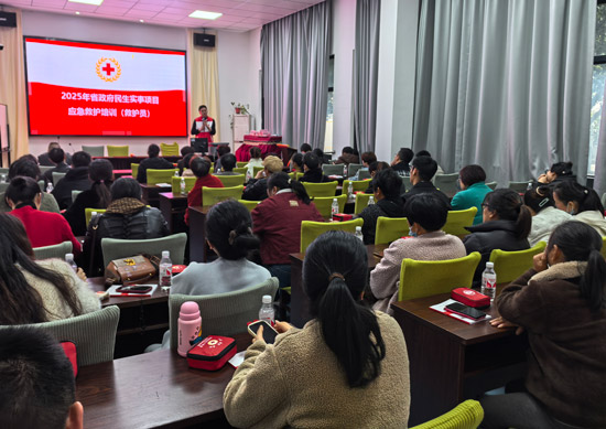 为提升辖区居民应对突发事件的自救互救能力,夯实基层应急救护力量,近日,兰亭街道在兰亭成人文化技术学校举办了一场红十字应急救护考证专项培训活动。活动特邀绍兴第二医院兰亭分院王宝峰医生担任主讲,吸引了50余名村居干部、网格员、志愿者等社区重点岗位人员参与。