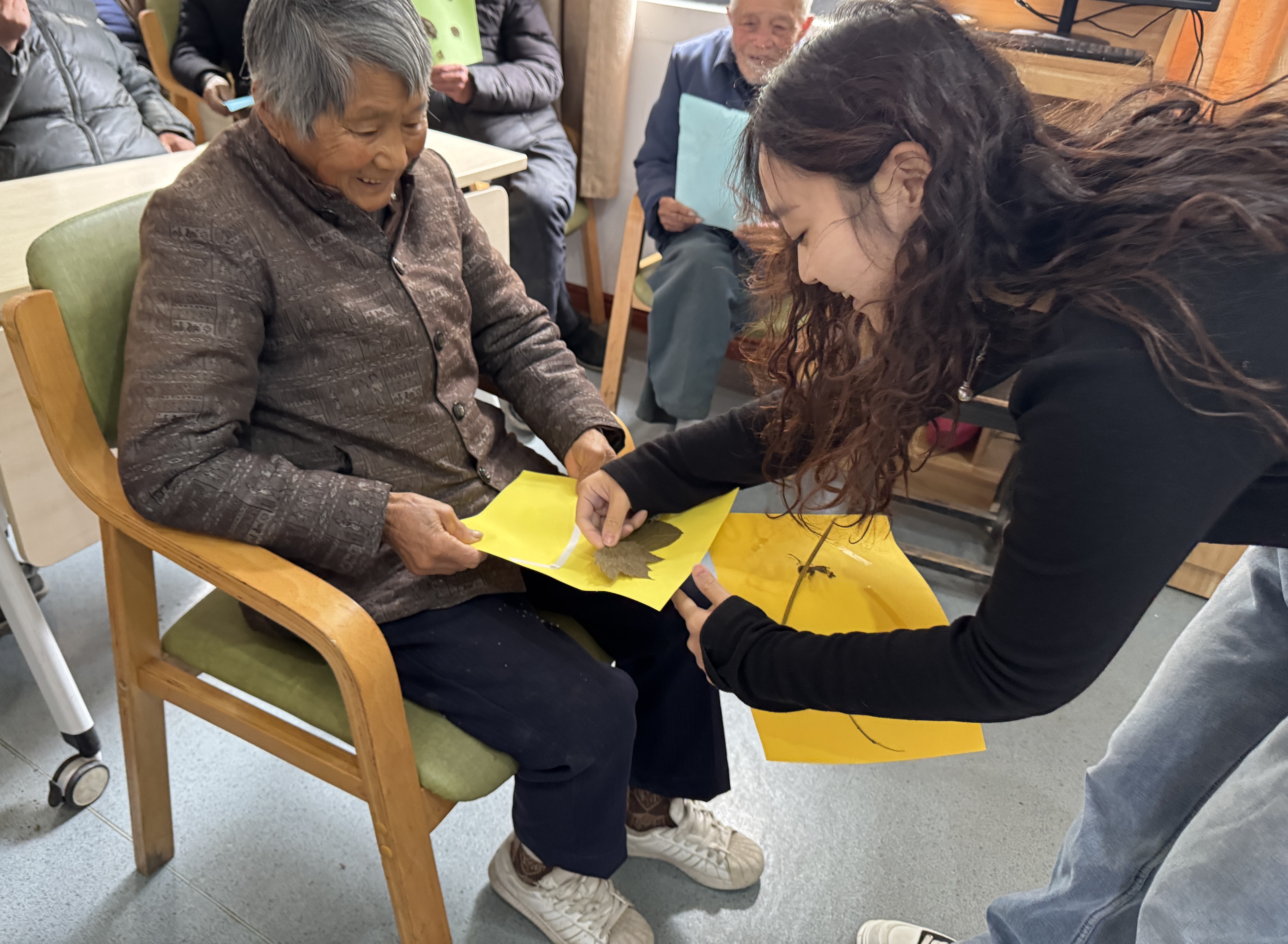 活动现场热闹非凡,充满了浓郁的艺术氛围。钟管成校的志愿者老师们精心准备了丰富多样的材料,五颜六色的纸张,形状各异的剪刀,胶水等一应俱全,为老年朋友们的创作提供了充足的素材。
