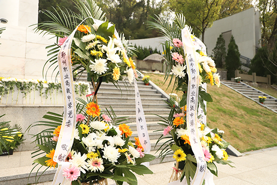 青山埋忠骨,鲜花祭英魂。党员代表、团员代表向革命烈士敬献花篮,全体师生向烈士行三鞠躬礼,依次上前献上鲜花,默哀缅怀,寄托哀思。洁白的花瓣在微风中轻轻摆动,传递着来自时代的回响。