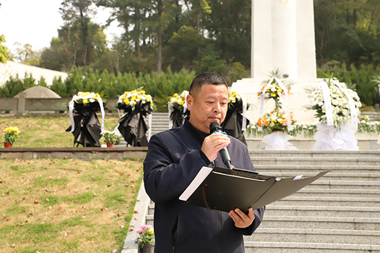 传承是最好的缅怀,奋斗是最深的告慰。接下来,校党委副书记、校长张武剑同志代表校党委致辞。一寸山河一寸血,一生秉烛铸民魂。眼前的墓碑,镌刻着中国共产党领导下的宁波儿女浴血奋战的壮丽史诗,他们用生命诠释了“革命理想高于天”的信仰,用热血浇筑了“党旗所指就是奋斗所向”的忠诚。张校长呼吁,作为新时代的共产党员,我们要从先烈精神中汲取力量,始终牢记“为谁培养人、培养什么人”的根本问题,将课程思政融入专业教学,让党的旗帜在职业教育阵地上高高飘扬;作为新时代的共青团员,我们要有“执着专注、精益求精”的追求,把对先烈的敬仰转化为技能成才的动力,用青春在专业技能的学习中谱写新时代的“劳动者之歌”。