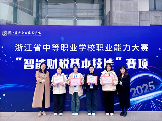 近日,2025年浙江省中等职业学校职业能力大赛“智能财税基本技能”赛项在浙江省经济职业技术学院举行。学校财会专业团队22会计1班李依婷、范秋雨、洪斯涵、裘乐妍等4名学生,与来自全省各地市的30组选手同场竞技,经过三场激烈比拼最终荣获团队三等奖。
