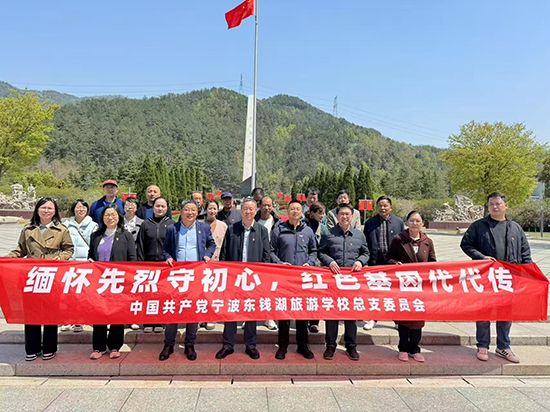 为弘扬革命精神,激励党员教师坚定理想信念、践行初心使命,4月2日,宁波东钱湖旅游学校总支委员会联合莫枝村党支部赴樟村四明山革命烈士陵园开展“缅怀先烈守初心,红色基因代代传”清明祭扫活动,并走访中国历史文化名村李家坑村,实地调研乡村建设成果,汲取奋进力量。学校杨海如书记和莫枝村盛瑜书记率领党员代表参加。