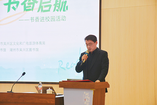 接着,丁建萍副局长向师生们介绍了吴兴区图书馆概况与特色品牌活动,她表示,非常期待通过“分馆共建”“公益实践”等创新模式的探索,实现吴兴文脉与教育使命的深度融合。