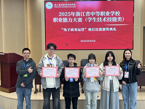 以赛促学,开启电商人才新篇;以教强能,夯实行业进步阶梯。4月3日,2025年浙江省中等职业学校职业能力大赛“电子商务运营”赛项在浙江商业职业技术学院举行。海盐职业教育中心参赛团队22商务2班晏飘、22跨境班卢羿帆、23跨境班刘乔雅、23跨境班宣东昊等4名学生,与来自全省各地市的22组选手同场竞技,经过2天激烈比拼最终荣获团队一等奖(第一名)的优异成绩,并获得了国赛资格。