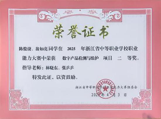 4月3日,2025年浙江省中等职业学校职业技能大赛赛场捷报频传,温州市职业中等专业学校信息学部师生凭借卓越实力与顽强拼搏精神,在“物联网应用与服务”与“数字产品检测与维护”两大赛项中斩获佳绩。