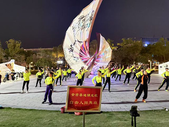 4月13日晚,安吉县社区教育学院递铺分院在安吉县中心广场举办自由人排舞班公益教学活动,87名市民踏着欢快节拍,在专业导师指导下翩翩起舞,为春日的县城增添了一道活力风景线。