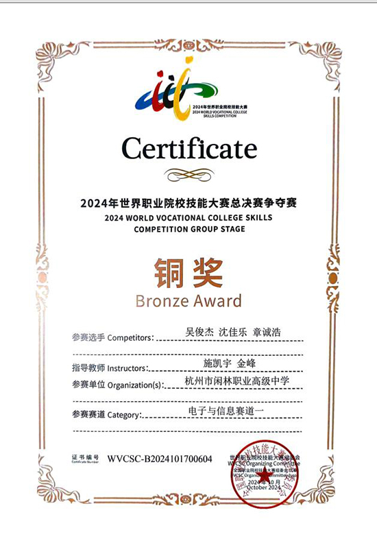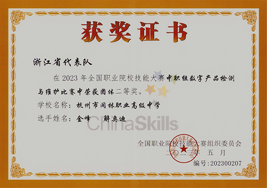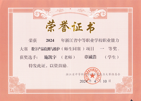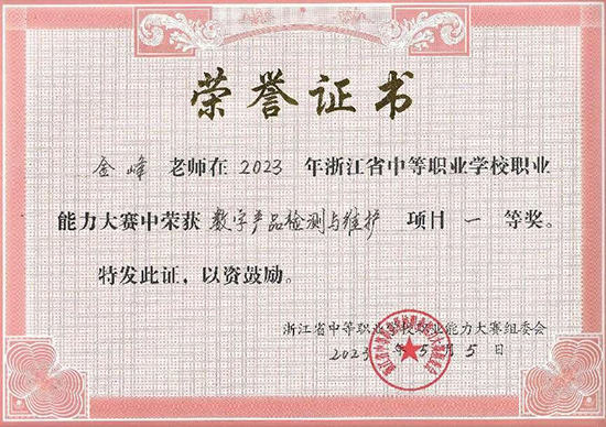 2023年,学校首次参加“数字产品检测与维护”省赛,就在该赛项中获得一等奖,在当年的国赛中获得银奖;2024年,再次在该赛项中获得一等奖,并在当年世界技能大赛中获得铜奖。