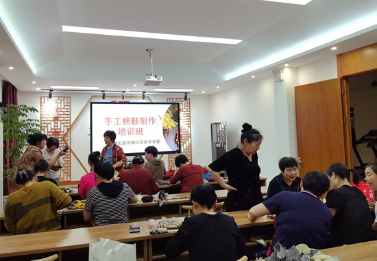 手工棉鞋制作班就是生动缩影。年初,湖塘老年学校深入调研,发现湖塘社区不少居民对手工制作有浓厚兴趣和一定基础,便积极谋划,开办手工棉鞋制作班。学校邀请当地棉鞋制作网红王国琴作为老师,为大家提供系统培训,从针法、材质挑选到设计创新,助力大家掌握扎实技能。同时,引入市场营销理念,组织棉鞋售卖,老人们参与产品设计、包装与销售,不仅增加收入,还成功融入数字时代。