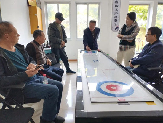 “这‘桌面运动’既考脑力又练协调!”施老师抹去细汗,笑着展示高分球。活动尾声,两地教师相约以球会友,自发组建“冰壶研习群”,约定每月“云端”切磋。将这项兼具趣味与健康的运动融入退休生活。
