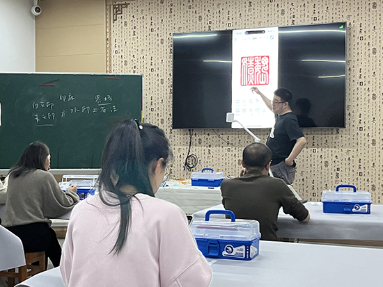 篆刻课堂上,篆刻老师耐心地指导学员们如何掌握技巧,创作出属于自己的印章作品。