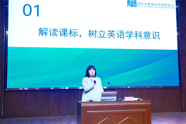 湖州市小学英语教研员吴悦带来了讲座《新教材 新资源 新实践——基于单元整体的小学英语课堂教学探索》。她强调新教材以学科意识培养为导向,注重培养语言能力、文化意识、思维品质和学习能力,指出通过语言技能与学习策略的双向互动,构建“主题—语篇—语言知识—文化知识—语言技能—学习策略”六位一体的教学框架,为落实新教材提供可操作路径。