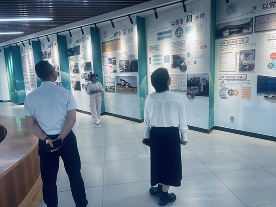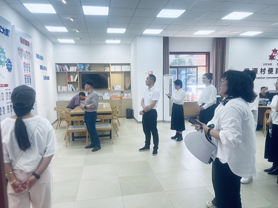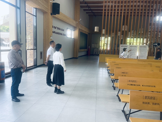 抵达枫源村后,党员教师们在讲解员的带领下走进村史陈列馆内,着重介绍党建工作、矛盾调解、乡村文化建设等方面的宝贵经验。党员教师对“问议办评 合力治村”的监督体制、“三上三下 民主治村”的决策机制、“乡里事务自治 乡村秩序法治、乡风文明德治”的乡村治理体系深有体会,结合教育工作实际,思考如何将党建与教育服务相结合、如何融入品德培养和社会认知教育、如何注重激发学生们的自主意识和团队合作精神。枫源村在党组织的坚强领导下,通过创新“三治融合”基层社会治理模式,充分发挥村民自治作用,走出了一条独具特色的乡村振兴之路。