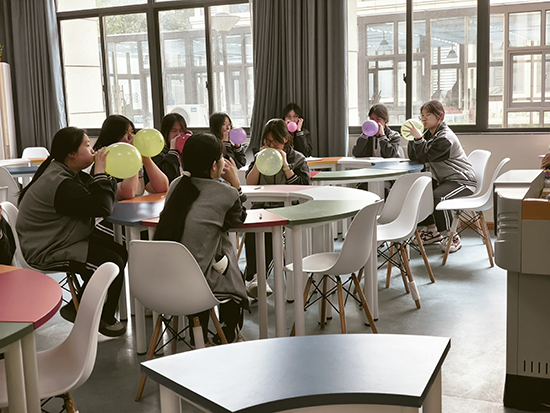 活动开场,一场趣味十足的吹气球破冰游戏瞬间点燃了现场气氛。参与者们在规定时间内努力吹气球,看着气球逐渐膨胀,现场充满了紧张又欢乐的氛围。在游戏过程中,部分参与者由于过于急切,气球甚至突然爆开,引得众人发出阵阵惊呼。这个游戏巧妙地模拟了考试时的紧张感,让大家在轻松愉快的氛围中初步体验到压力的变化,为后续深入探讨考试焦虑话题做了生动铺垫。