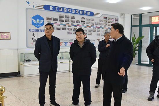 在汇报交流环节,贺建谊书记详细汇报了学校的办学情况,化工专业部部长何骏也针对专业建设情况进行了深入分享,让在场领导对学校的现状和发展方向有了全面的了解。