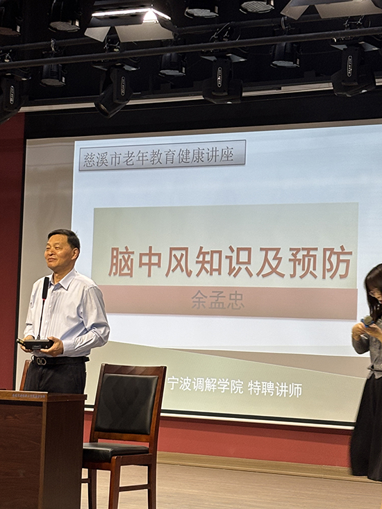 4月27日上午,漾山村文化礼堂内座无虚席,慈溪市老年教育健康讲座在此开讲。宁波调解学院特聘讲师余孟忠受邀作“脑卒中防治”专题讲座,115名中老年学员齐聚一堂,共同学习脑健康防护知识。