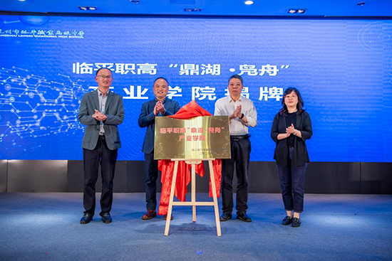 最后,省市区领导上台共同推动代表着临平职高“未来汽修”联盟暨“鼎湖·凫舟”产业学院成立的推杆,新征程就此启航。