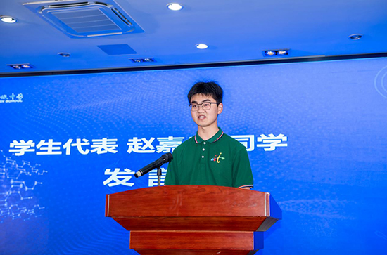 2024年临平职高汽车运用与维修专业的学生团队在世界职业院校技能大赛中一举夺魁,豪德汽车服务有限公司副总经理张云富和学校吴燕丽副校长为他们颁发奖金。金牌获得者、汽修专业中高职一体化班赵嘉乐同学作为学生代表发言。