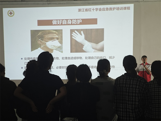 培训现场,丁柏伟老师凭借丰富的经验和专业素养,从基础理论知识入手,详细讲解了心肺复苏、气道异物梗阻急救、创伤包扎等常见急救场景的处理方法。他结合生动的案例,将原本晦涩难懂的医学知识转化为通俗易懂的语言,让学员们能够快速理解和吸收。在实践操作环节,丁柏伟老师亲自示范,动作熟练、规范,每一个步骤都讲解得十分细致。学员们聚精会神地观看,不时拿出手机记录关键要点。