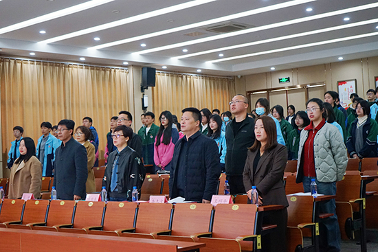 在省赛出征仪式环节中,舞台布景项目的参赛团队从范晓春手中接过出征旗帜,他们将代表学校参加即将到来的省级比赛。出征仪式极大地鼓舞了参赛队员的士气,也激发了在场学生的竞争意识和团队协作精神。