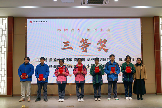 接着进行的是市技能节表彰环节。王巧平、阮雪琴和范晓春三位领导分别向获得三等奖、二等奖和一等奖的学生颁发了奖状,对他们的努力和成就给予了肯定。这些荣誉不仅是对学生个人能力的认可,也是对他们团队合作精神的赞扬。