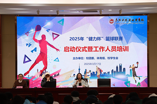 为丰富校园文化生活,全方位提升学生综合素质,全力营造团结奋进的校园氛围,嘉兴市建筑工业学校一年一度的篮球联赛拉开帷幕!3月17日中午,校团委在鼎建报告厅举行了2025年“健力杯”篮球联赛启动仪式暨工作人员培训会,为这场青春与激情的碰撞吹响了号角。嘉兴市建筑工业学校校团委负责人张晓红、体育组教师陈超、裁判员、各参赛队员负责人及赛事工作人员齐聚一堂,启动仪式由校团委教师黄利婷主持,现场气氛热烈而庄重。