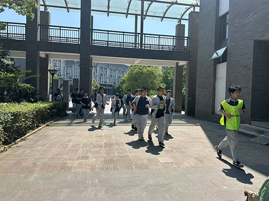 “别着急,分为二路纵队有序撤离”“不要跑,以快步走方式到运动场集结”5月14日下午1时50分,随着警报声的响起,诸暨技师学院101个班级4000多师生迅速、有序地沿着安全通道向操场紧急疏散,整个过程用时6分35秒,这是该校响应2025年“防灾减灾”宣传周和反恐宣传月教育活动组织实施的教学楼应急疏散演练。