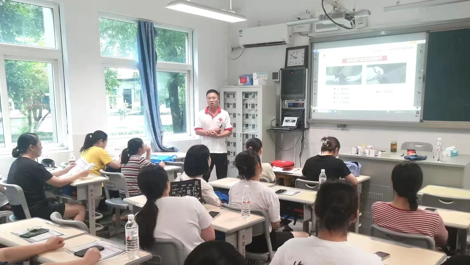 学校高度重视普及急救教育,现有急救培训多媒体教室20个、心肺复苏人体模型20个、教学模拟机3台,拥有省级救护师15人、市级考评员2人。通过“三进两训一练”模式(应急救护进校园、课堂、企业;师生救护培训;应急演练),构建急救育人体系。近三年,累计开展教师急救取证培训2000人次、学生1500人次,普及培训3500余人次。