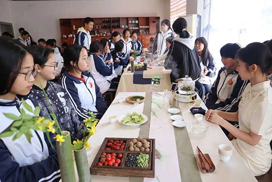4月1日,在“春日养心 茶韵传情”茶文化开放日活动上,党员教师积极参与筹备。他们邀请专业茶艺师,组织学生布置场地、准备茶具。活动中,党员教师引导学生品茶悟道,感受茶文化与康养理念的融合,培养了学生的审美情趣和人文素养,让传统文化在康养教育中焕发出新的活力。