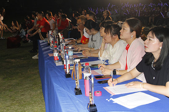 灯光璀璨,决赛现场,高潮迭起。操场上气氛热烈非凡。选手们怀揣梦想与激情,轮番登场。动人的民谣、激昂的摇滚、深情的流行、经典的怀旧金曲……风格多样的歌声在舞台上交织碰撞。他们用扎实的唱功、饱满的情感投入和独具个性的舞台表现力,深深打动了在场的每一位评委和观众。台下荧光棒挥舞,欢呼声、喝彩声此起彼伏,汇成一片热情的海洋。