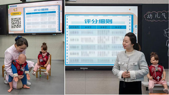“不好!宝宝被糖果卡住了!”在诸暨职教中心的智慧教室里,一场惊心动魄的急救演练正在进行。幼儿保育专业张艳老师与护理专业石佳茹老师联袂开展《气道异物阻塞应急处置》公开课。课堂创新采用“VR+实体”双轨模式,学生先在虚拟平台演练海姆立克手法,再通过特制马甲进行实体操作。双师协同有效解决成人手法儿童化难题。课程还设置“家长panic”情境剧,让学生在抢救同时练习安抚技巧,全面提升职业素养。“这堂课让我们既掌握了急救技能,更读懂了保育员的使命。”参与学生如是说。这场跨界教学实践,为培养“技术+情怀”兼备的新时代保育人才提供了鲜活范本。