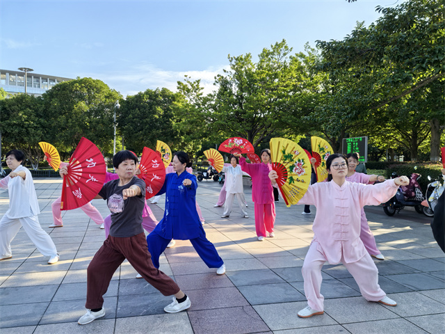 活动现场,王连生老师身着一袭飘逸的太极服,身姿挺拔。他从太极扇的基础握法、站姿讲起,动作分解细致入微,一招一式刚柔并济、行云流水。学员们全神贯注,手持色彩鲜艳的太极扇,紧紧跟随王老师的节奏,时而挥扇生风,时而收势沉稳。尽管许多学员是初次接触太极扇,但在王老师耐心地指导下,大家逐渐掌握了要领,动作也愈发整齐规范。“太极扇将太极的柔美与扇子的刚劲巧妙融合,不仅能强身健体,还极具观赏性。”王连生老师在教学间隙向学员们介绍道。学员们纷纷表示,参加此次培训收获颇丰,既锻炼了身体,又领略到了传统太极文化的魅力,希望以后能有更多这样的学习机会。