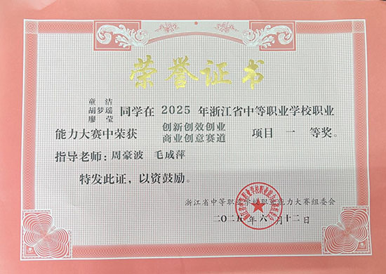 6月12日,2025年浙江省中等职业学校职业能力大赛(学生职业素养类)“创新创效创业”项目决赛在金华圆满落幕。嵊州市职业教育中心22汽车维修班童洁、23汽车营销班胡梦瑶、廖莹组成的创业团队荣获商业创意赛道一等奖。