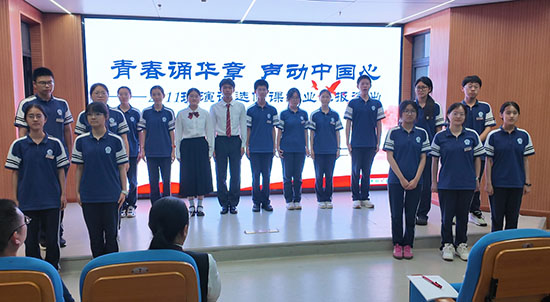 在这场学生主持、担当主角的“青春诵华章,声动中国心”汇报演出上,却旦校长、闻建明副校长、班主任马王贵老师以及选修课指导教师、浙江省朗诵协会会员、临平区朗诵协会副主席、临悦朗诵团团长、浙江省中小学生课文朗诵大赛高级指导教师何芳雨,欣然来到现场,见证同学们通过选修课浸润锤炼而带来的从内至外的改变。
