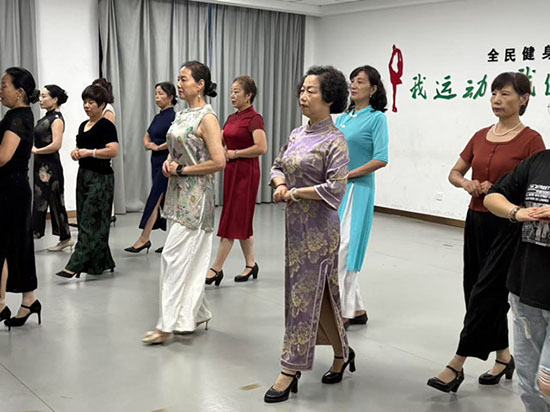 资深形体艺术爱好者王文芳老师担任主讲。她以经典曲目“上海谣”为艺术载体,倾力聚焦旗袍走秀中的核心要素——步伐节奏。王老师不仅细致拆解了稳健站姿、轻盈移步、流畅转身等基本要领,更通过精准节拍解析与反复示范,引导学员用心体悟步态与音乐的和谐共振,于举手投足间传递东方风韵。现场学员跟随王老师指导,从生疏到渐入佳境,一颦一笑、一步一摇间,逐渐展现出自信从容的风采。