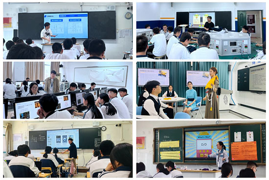 青年教师课堂风采展示,彭代婧航空服务专业《客舱安全演示—救生衣的使用》;庄锋杰电子电工专业《分压式偏置放大电路》;单柯电子电工专业《基尔霍夫第二定律》;董志凯电子商务专业《农产品销售logo设计》;王哲能影视影像专业,《毕业设计纪录片后期制作指导》;赵俊风国际商务专业《交易磋商——接受》。课后,指导教师听评课反馈。