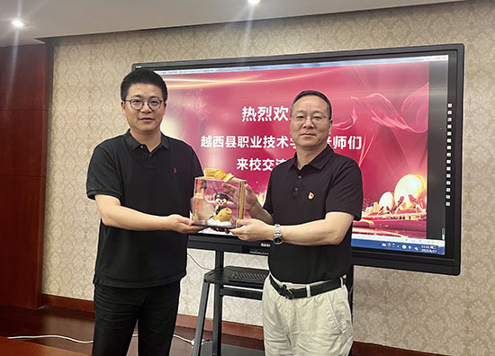 2022年8月,学校副校长金立峰跨越2000公里山海,赴越西县职业技术学校支教。三年支教即将结束,当天,金立峰向学校汇报支教工作。他立足当地学校实际情况,重点介绍了支教期间为当地学校和职教发展所做的贡献。初到学校时,面临办学经费短缺、硬件设施陈旧、师资力量薄弱、生源质量堪忧的困境,他完善制度,提升学校治理水平;改善条件,营造良好教学环境;创新模式,提升人才培养质量;引培结合,加强师资队伍建设;搭建平台,促进学生全面发展;立足长远,布局职教统筹发展。三年来,在他的带领下,学校在课程建设、学校管理、师资培养、学生发展等领域结出硕果,学校成为凉山州职业教育不可忽视的力量。金立峰还带来了特色文创产品“小嶲”,由学生自主设计,再由3D打印出品,寓意两校学子鲤鱼跃龙门,携手奔赴美好未来。