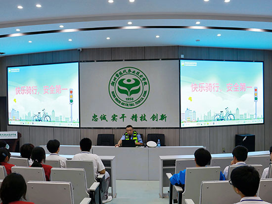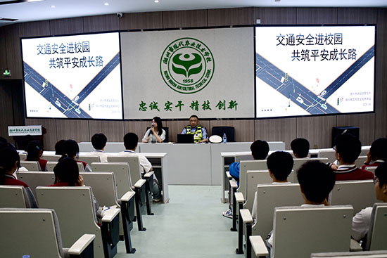 为增强学生的交通安全意识,提高自我保护能力,预防道路安全事故发生,6月19日,湖州市埭溪交警中队的交警走进湖州市现代农业技术学校,为学生带来一场别开生面的交通安全知识讲座。