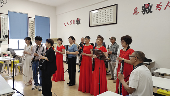 排练过程中,老年朋友们通力合作,现场充满欢声笑语。学员李阿姨笑着说:“参加电吹管班不仅学会了一门乐器,还结识了许多志同道合的朋友,每次排练都特别开心,期末汇报演出更是让我们有了展示的舞台!”