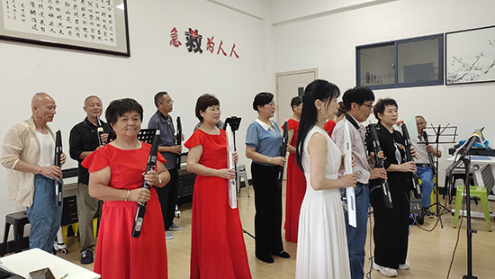 6月26日下午,安吉县社区教育学院昌硕分院(昌硕成校)的排练室内乐声悠扬、笑语盈盈。在授课教师陈有楚和吴商的悉心指导下,老年电吹管班的学员们正抓紧时间进行期末汇报演出排练,以饱满的热情为学期学习成果画上精彩句号。