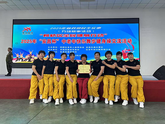 与此同时,学校的健身操班同样光芒四射。学员们以充满活力的步伐和富有感染力的笑容,将健身操的动感节奏与积极向上的生活态度完美融合。整齐划一的动作、洋溢的热情,充分展现了新时代老年人追求健康、乐享生活的无限激情,毫无悬念地摘得柯桥区健身操项目的“优胜奖”。