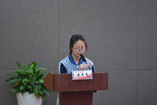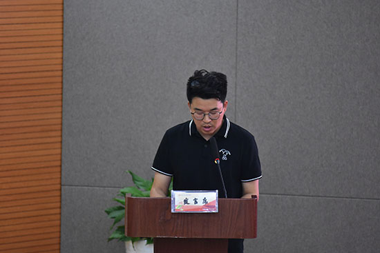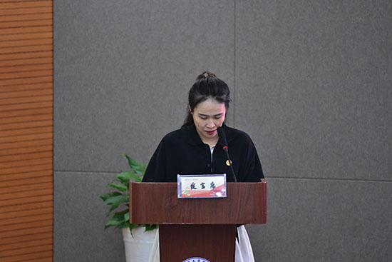 2402电子商务班马鑫瑗同学作为优秀学员(新团员代表)代表发言,她表示会用更高标准要求自己,争做一名优秀的共青团员,并呼吁在场的所有学员积极提升自我,以饱满的热情迎接团的考验,贡献自己的青春力量。